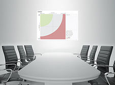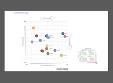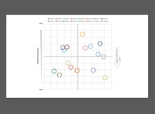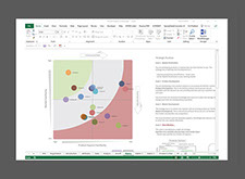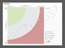 The Product and Market dimensions are broken down into 6 attributes (which can be modified if required) per category meaning overall we measure 12 attributions (6 + 6) which are then weighted in terms of their relative importance. Up to 16 Products / Services can be entered into this model, as such a comprehensive positioning map can be produced detailing the degree of commercial risk each product (within a portfolio) has on the company - Furthermore each plot can have a third dimension whereby the size of the plot itself can represent Revenue / Profit/ Volume. Overall this is an extremely useful strategic planning tool and offers a compelling presentation to support your strategic rationale.