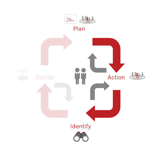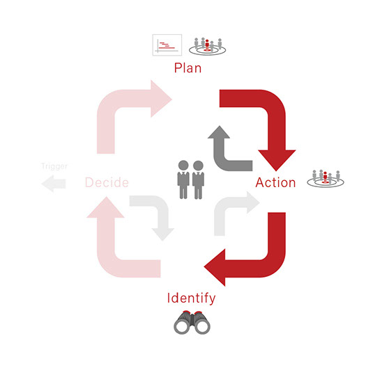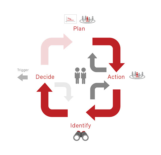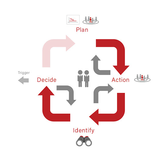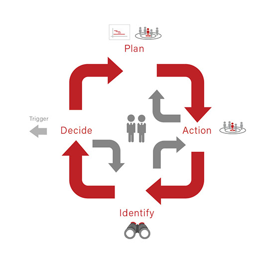 PAID is an abbreviation for Plan, Action, Identify and Decide and it is associated with the ‘Reconnaissance’ element of RADA(R). You may wish to consider using PAID on a per market segment / demographic basis (geodemographic). In other words, a collective of PAID Loops would be operative at any one point in time.
